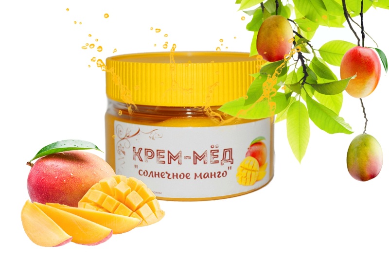 Состав — крем-мед, фруктовая добавка (манго дробленое, сок манго, В-каротин). Не содержит ГМО. Цвет — желтый. Консистенция кремообразная. Пищевая ценность 100гр продукта: углеводы не менее 75гр. Энергетическая ценность 284ккал (1189кДж) Хранить при t от 0 до 20 С и относительной влажности не более 75%. Срок годности 2 года. СТО 67594434-001-2012. Дата изготовления смотри на этикетке. Продукт готов к употреблению.